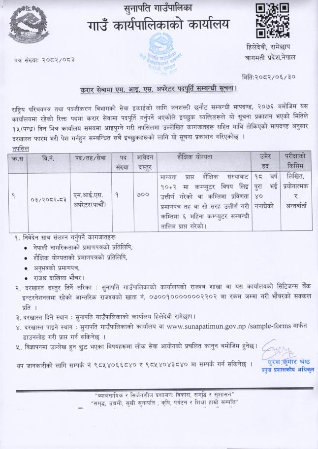 करार सेवामा एम आइ एस अपरेटर पदपूर्ति सम्बन्धी सूचना
