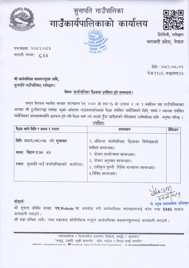 सुनापति गाउँपालिका राजस्व सुधार कार्ययोजना २०८२