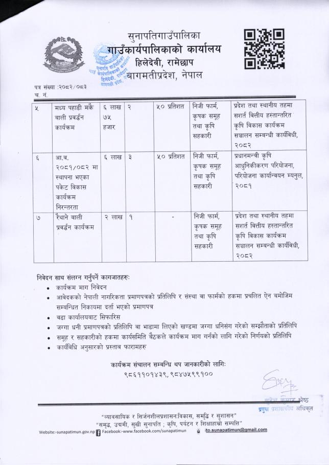 एक घर एक बगैचा कार्यक्रम अन्तर्गतको अनुदानमा फलफुल तथा वनस्पतिको विरूवा वितरण सम्बन्धी सूचना