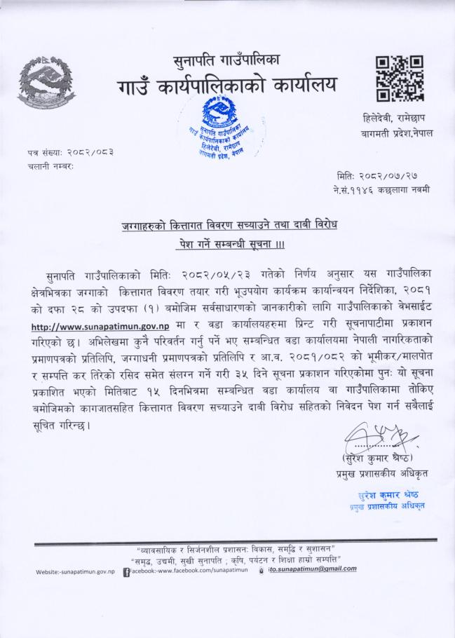 » जग्गाहरूको कित्तागत विवरण सच्याउने तथा दावि विरोध पेश गर्ने सम्बन्धी सूचना