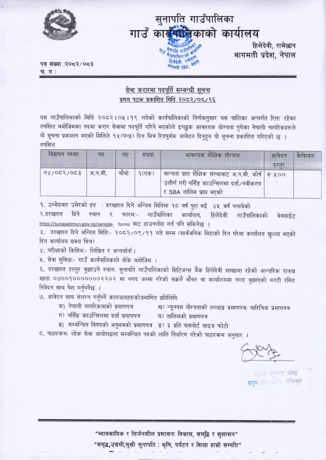 सेवा करारमा अ.न.मि. (चौथो) पदपूर्ति सम्बन्धी सूचना