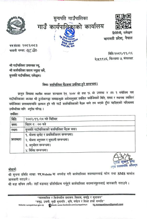 सुनापति गाउँपालिका राजस्व सुधार कार्ययोजना २०८२