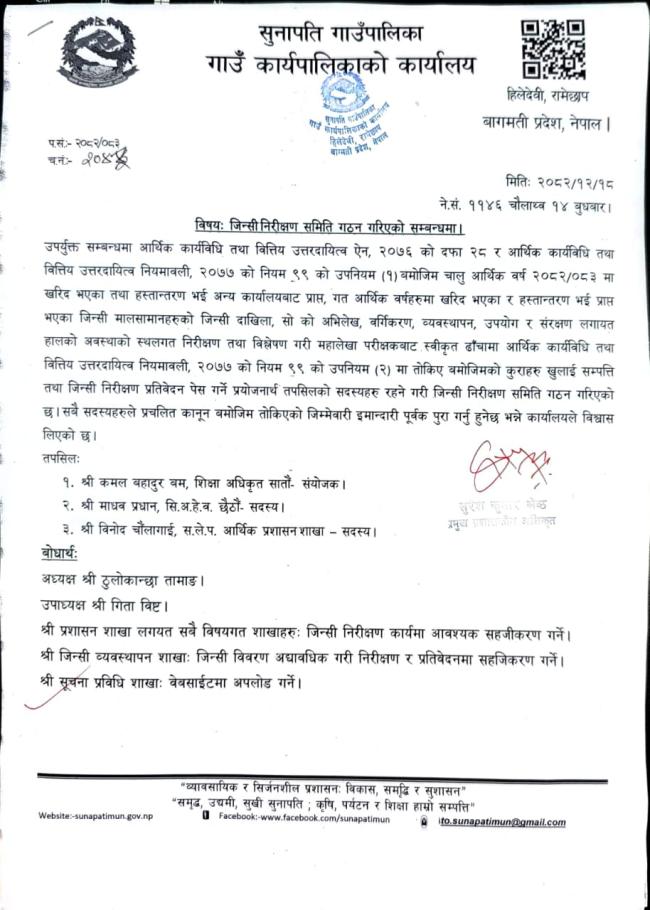 जिन्सी निरीक्षण समिति गठन सम्बन्धमा