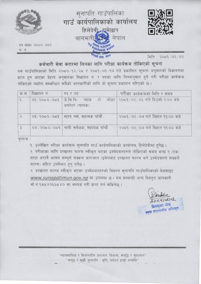 सेवा करारमा अ.न.मि. (चौथो) पदपूर्ति सम्बन्धी सूचना
