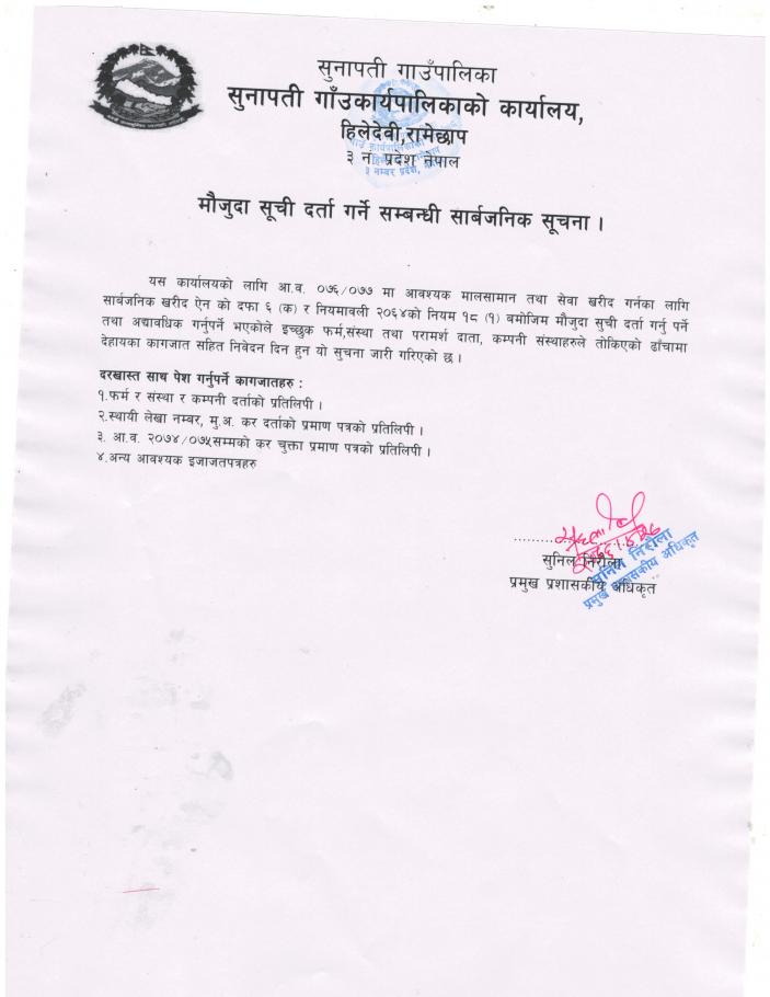 » मौजुदा सूची दर्ता गर्ने सम्बन्धि साबिजनिक सूचना