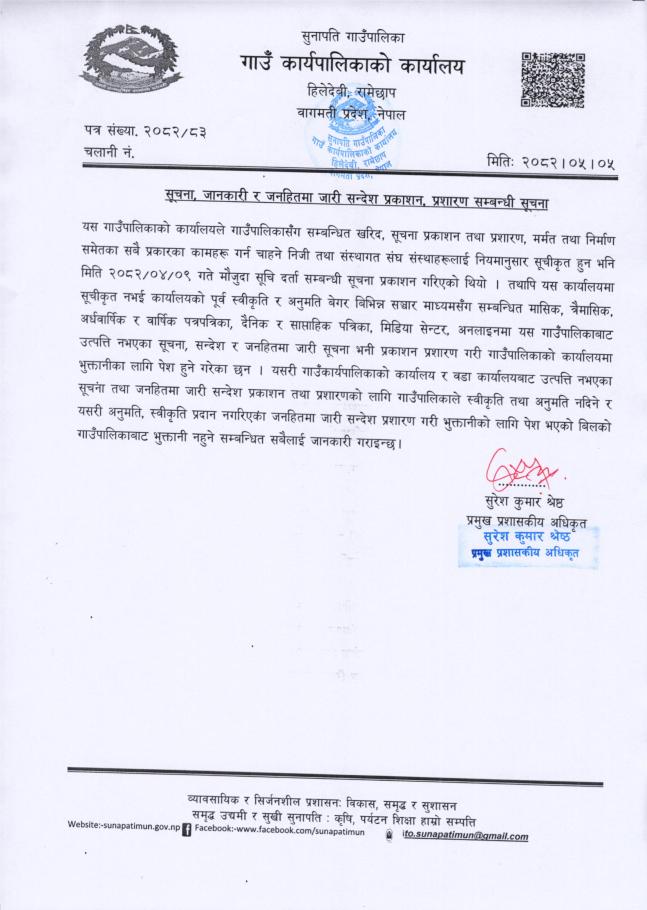 » सूचना,जानकारी र जनहितमा जारी सन्देश प्रकाशन,प्रशारण सम्बन्धी सूचना