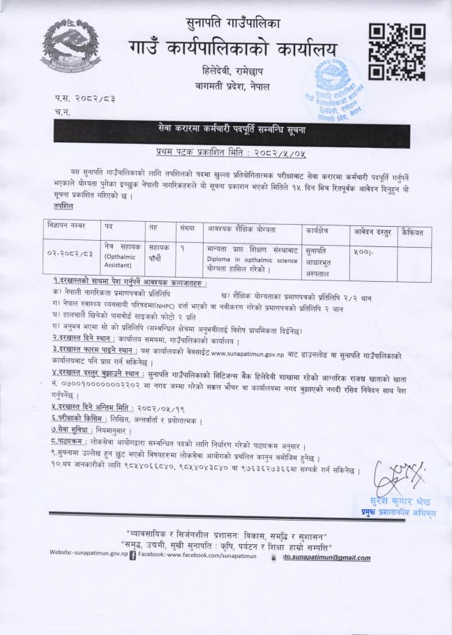 » सेवा करारमा नेत्र सहायक पदपूर्ति सम्बन्धी सूचना