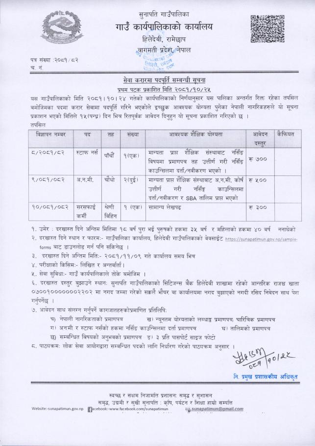 सेवा करारमा पदपूर्ति सम्बन्धी सूचना